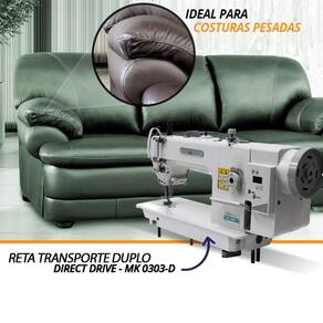 Máquina reta industrial direct drive com transporte duplo, motor direct drive, uma agulha e ponto fixo. Possui um sistema de barra de agulha fixa, sistema duplo por dente e calcadores. Fácil ajuste para sincronizar à altura dos calcadores que auxiliam no transporte de materiais pesados como couro, lona e sintéticos. Motor direct drive capaz de economizar até 60% de energia comparado com motores convencionais, além de garantir maior agilidade na produção, com parada superior e inferior.