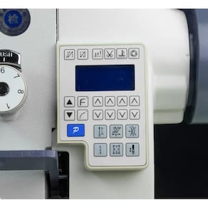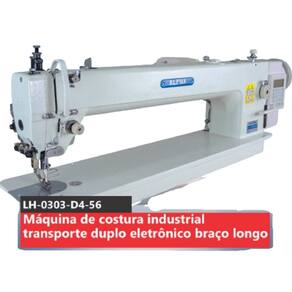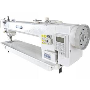 Máquina de Costura Reta Transporte Duplo Eletrônica Braço Longo com cabeçote longo de 56cm. Possui lubrificação automática, corte de linha automático, levantador de calcador automático, retrocesso automático e parada de agulha automática. Indicada para materiais pesados como couro, lona e PVC.Funções