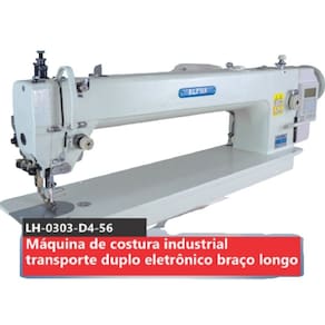 Máquina de Costura Reta Transporte Duplo Eletrônica Braço Longo com cabeçote longo de 56cm. Ideal para materiais pesados como couro, lona e PVC. Possui lubrificação automática, corte de linha automático, levantador de calcador automático, retrocesso automático e parada de agulha automática. Motor Direc Drive.Funções