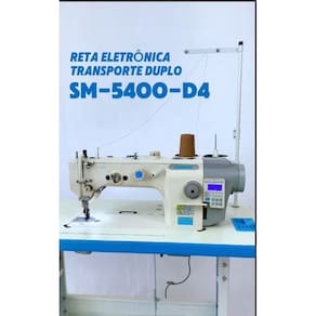 SM-5400-D4 Maquina de costura reta 1 Agulha ponto fixo, com Motor Direct-Drive Eletrônico embutido no cabeçote, posicionador de Agulha, Controle de Velocidade, luz de LED embutida, sistema de estica fio e lançadeira rotativa, Corte de Fio automático, levantador de calcador automático, arremate inicial e final, caça-fio eletromagnético, para Material PESADO, TRANSPORTE DUPLO Superior e Inferior, comprimento do ponto 8mm, Altura do Calcador 8-16mm. Velocidade 2000 RPM, Versão 220V.