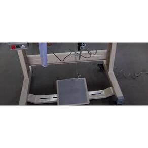 Máquina de costura industrial reta com transporte duplo, sistema automático de lubrificação, levantamento do calcador por alavanca e joelheira. Ideal para costuras sobrepostas em materiais como couro e bolsas. Inclui mesa, motor servo silencioso e bivolt.Funções