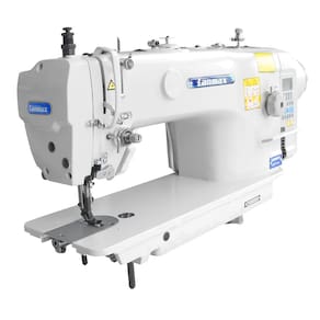 LM-0718T-D4-ALL Reta Eletrônica, 01 agulha, transporte triplo (dente, agulha e calcador) motor Direct Drive, lançadeira grande e lubrificação automática. Possui painel embutido, levantamento de calcador e corte de linha automático, costura e retrocesso programável e ponto de 8mm. Posicionador de agulha em cima e/ou embaixo, led de iluminação e controle digital de velocidade. Voltagem 220V e 60Hz. Indicada para materiais como; couro natural ou sintético, lona e PVC. Reta Eletrônica, 01 agulha, transporte triplo (dente, agulha e calcador) motor Direct Drive, lançadeira grande e lubrificação automática. Possui painel embutido, levantamento de calcador e corte de linha automático, costura e retrocesso programável e ponto de 8mm. Posicionador de agulha em cima e/ou embaixo, led de iluminação e controle digital de velocidade. Voltagem 220V e 60Hz. Indicada para materiais como; couro natural ou sintético, lona e PVC. Pode ser usada na confecção de calçados, jaquetas, estofados entre outros materiais. Vantagens: – Baixo nível de ruído e vibração – Função ponto-a-ponto (dispensa o manuseio do volante) – Economia de energia – Alívio de fadiga do operador - Envio feito via transportadora ( 2 caixas, maquina+mesa) Montagem por conta do Comprador