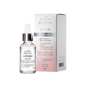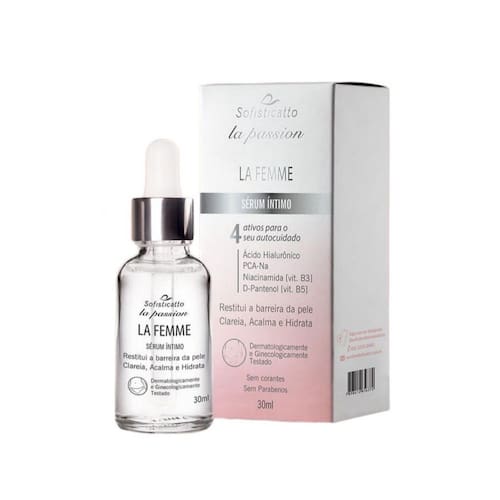A estética íntima é a nova tendência do mercado e cada vez mais vem alcançando tanto o público feminino quanto o masculino. La Femme Sérum Íntimo é um produto com 4 com ativos poderosos que trabalham em sinergia com características umectantes, hidratantes, calmantes e clareadoras que atuam restituindo a barreira da pele, reduzindo a vermelhidão na região íntima após atritos de qualquer natureza.