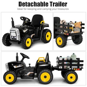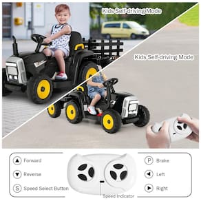 O OLAKIDS 12V kid 2 em 1 é um trator com reboque que proporciona aos seus pequenos um prazer de condução superior e verdadeira diversão. O reboque é removível, sólido e durável, e os faróis LED brilhantes e som de inicialização oferecem um estilo realista. O carro Rideon vem com controle remoto de 2,4 GHz, permitindo que as crianças dirijam manualmente ou os pais controlem com segurança. A porta USB e o Bluetooth integrado permitem que você se conecte ao seu dispositivo e reproduza sua própria música. As 4 rodas resistentes ao desgaste e antiderrapantes são adequadas para uma variedade de estradas. A capa sólida em PP torna o carro Rideon uma delícia duradoura com peso máximo de 29,93 Quilos. É indicado para crianças com mais de 3 anos de idade e suporta até 29,93 Quilos. O trator também vem com cinto de segurança de 2 pontos para segurança. O OLAKIDS 12V kid 2 em 1 é feito de materiais não tóxicos sem qualquer odor, LIVRE de BPA, PVC, ftalatos, grafite, látex e formaldeído. Passou nos testes de estabilidade, asfixia, carga e cisalhamento. Além disso, cumpre os regulamentos de eficiência de energia elétrica do Departamento de Energia e da Comissão de Energia da Califórnia para melhorar a eficiência dos produtos elétricos, economizar energia, reduzir as emissões de gases e os efeitos de efeito estufa.
