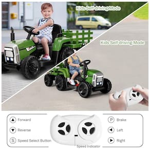 O OLAKIDS 12V kid 2 em 1 é um trator com reboque que proporciona aos seus pequenos um prazer de condução superior e verdadeira diversão. O reboque é removível, sólido e durável, e os faróis LED brilhantes e som de inicialização oferecem um estilo realista. O carro Rideon vem com controle remoto de 2,4 GHz, permitindo que as crianças dirijam manualmente ou os pais controlem com segurança. A porta USB e o Bluetooth integrado permitem que você se conecte ao seu dispositivo e reproduza sua própria música. As 4 rodas resistentes ao desgaste e antiderrapantes são adequadas para uma variedade de estradas. A capa sólida em PP torna o carro Rideon uma delícia duradoura com peso máximo de 29,93 Quilos. É indicado para crianças com mais de 3 anos de idade e suporta até 29,93 Quilos. O trator também vem com cinto de segurança de 2 pontos para segurança. O OLAKIDS 12V kid 2 em 1 é feito de materiais não tóxicos sem qualquer odor, LIVRE de BPA, PVC, ftalatos, grafite, látex e formaldeído. Passou nos testes de estabilidade, asfixia, carga e cisalhamento. Além disso, cumpre os regulamentos de eficiência de energia elétrica do Departamento de Energia e da Comissão de Energia da Califórnia para melhorar a eficiência dos produtos elétricos, economizar energia, reduzir as emissões de gases e os efeitos de efeito estufa.
