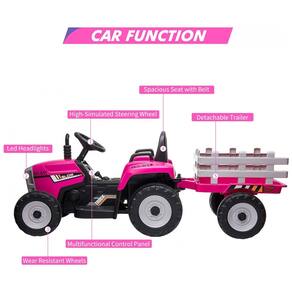Com um design realista de trator, este veículo vem equipado com faróis brilhantes de 7LED, padel de controle e câmbio de 2 marchas realista. Além disso, possui apoio de braço sólido, reboque removível, bateria recarregável com motor 212V e dimensões totais de 137,16 cm x 50,80 cm x 53,34 cm, com capacidade de peso de 29,93 quilos.