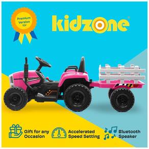 O trator vem equipado com uma bateria Leadacid recarregável de 12V com tempo de carregamento de 8 a 12 horas. A capacidade máxima de peso é de 29,93 quilos e é adequado para crianças a partir de 3 anos. Com quatro grandes pneus EVA, o trator oferece uma condução suave em diversas superfícies, sendo ideal para brincadeiras internas e externas.
