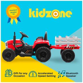 Trator Elétrico Infantil com Pneus de EVA e Motores Duplos de 35W, 12V 7AH, Kidzone, Vermelho