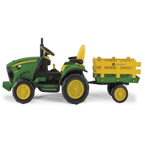 Trator elétrico john deere ground force 12volts - peg-pérego é a reprodução exata do tractor americano mais famoso de john deere no mundo. As crianças adoram suas cores imponentes e inconfundíveis em verde e amarelo e suas características especiais. Este trator elétrico bonito é ideal para crianças com até 3 anos que gostam de passar seus dias a brincar ao ar livre. Funciona com uma bateria recarregável de 12 volts. Poderoso, forte, seguro, assim como um bom gigante. John deere ground force ama as crianças por seu tamanho impressionante , excelente capacidade de transporte ; eles gostam de seus pais pela alta qualidade garantida por peg perego. Seu grande trailer - incluído na caixa - é indispensável para jogar grande. É fácil engatar e desbloquear graças ao gancho de bloqueio aberto e fechado. Possui 2 rodas com passos esculpidos que permitem que você percorrafacilmente terreno irregular. Os 3 persianas de madeira mantêm a carga e o lado aberto facilita o carregamento / descarregamento. Uma esferaevite deslizar objetos do trailer quando estiver se movendo. O fundo, com decoração antiderrapante, está fechado. As aventuras tornam-se alegres se tiverem uma trilha sonora. Para animar seus convidados, o painel de bordo john deere ground force possui um rádio fm funcional especificações técnicas: por que escolher ideal para crianças de até 3 anos que amam tratores e jogam ao ar livre. Tipo tractores elétricos. Principais características tamanho impressionante, excelente capacidade de carga, grande reboque incluído na caixa. 2 rodas com piso esculpido para viajar facilmente no terreno disjunto. Radio fm. Escala de cores / versões - acessórios john deere farm wagon trailer, mais reboque john deere stake-side trailer incluído. Idade do uso 3+ número de lugares 1 número de engrenagens 2 + r número da roda 4 rodas motrizes 2 motores 2 165w 330w no total . Bateria / alimentação 1 bateria de cinza selada sem cinza 12v / 8ah, incluída na embalagem. Carregador 1 carregador de bateria 12v incluído na embalagem. Baterias alcaline baterias 2 pilhas aa 1. 5v não fornecidas superfícies ideais grande desempenho até subindo e em terreno disjuvido. Inclinações variáveis 10% rodas carpinteiro esculpido. Acelerador com pedal freio tudo em um com pedal acelerador / freio elétrico. Rádio fm sim trailer sim base fechada sim vida da bateria 1 40 minutos velocidade em 1ª marcha 3,5 km / h - 2,2 mph 2ª velocidade 7,3 km / h - 4,5 mph velocidade inversa 3,5 km / h - 2,2 mph artigo peso 16 kg - 35,2 lbs peso transportável máximo 40 + 10 kg medidas do produto: peso: 16 kg altura: 1,69 m largura: 63 cm comprimento: 68 cm medidas da embalagem: peso: 16 kg altura: 1,02 m largura: 49 cm comprimento: 63 cm registro no inmetroce-bri/iqb 003267 51883/18-004