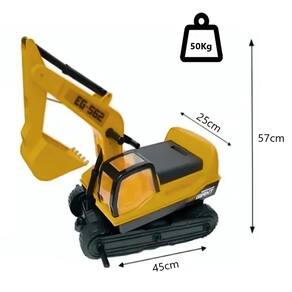A giant escavator é a escavadeira feita em plástico resistente (pvc de alta resistência), que vai proporcionar momentos de pura diversão para a criançada. Esta escavadeira movimenta-se quando a criança impulsiona os pés no chão ou quando é puxado por um adulto, possui pedal para apoio dos pés da criança.