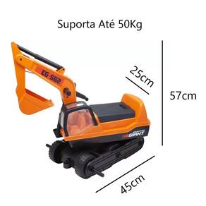 A giant escavator é a escavadeira feita em plástico resistente (pvc de alta resistência), que vai proporcionar momentos de pura diversão para a criançada. Esta escavadeira movimenta-se quando a criança impulsiona os pés no chão ou quando é puxado por um adulto, possui pedal para apoio dos pés da criança. A escavadeira gira para direta e esquerda, o braço e a pá são controlados por manivelas. Indicado para crianças de 3 a 7 anos e suporta crianças de até 50kg. Deixe a brincadeira ainda mais divertida com giant escavator