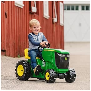 O John Deere Pedal Tractor vem com um assento ajustável, pedais de fácil acesso e volante. O volante está totalmente operacional e este passeio duro no trator pode executar várias tarefas. O assento ajustável cresce com seu filho e facilita manter os pedais na distância certa. s crianças apreciam uma máquina de trabalho duro que pode executar uma infinidade de tarefas, e é exatamente isso que elas obtêm com este trator de pedais de plástico John Deere. Este carrinho robusto faz o trabalho com recursos essenciais. O assento é ajustável para que possa crescer com seu filho, até o limite máximo de peso de 36 kg. Os pedais de fácil acesso tornam a condução livre de frustrações e o volante é totalmente funcional, facilitando a passagem de uma aventura ao ar livre para a próxima