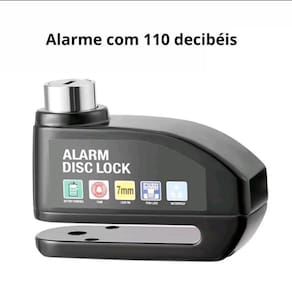 Trava Antifurto Cadeado P/ Moto C/ Alarme Sonoro Freio Disco Trava Disco C/ Alarme Cadeado Antifurto Freio Moto Universal Sua trava funciona com um pino de segurança de aço de 6 milímetros que se encaixa no disco da moto. Quando o sensor detecta movimento o alarme é acionado e soará de 10 a 15 segundos antes de voltar para o modo silencioso caso não haja mais movimento detectado. O disparo se repetirá toda vez que o sensor de movimento for ativado. A trava possui corpo de aço e sua chave é codificada e a mesma serve para acionar e desligar o alarme.