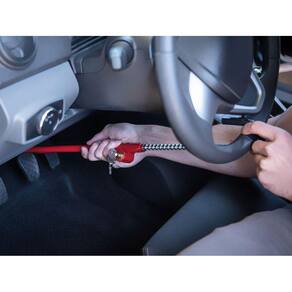 Trava Antifurto para Volante Tramontina com Chave Para a maior segurança de seu veículo, a Tramontina lança a Trava Antifurto para Volante Tramontina com Chave Produzido em aço carbono com revestimento emborrachado, protege o volante e pedal do seu automóvel com muito mais e segurança. Ajustável, ele se adapta a diferentes modelos de carros. Para sua tranquilidade, acompanha duas chaves. Regulagem máxima de comprimento: 725 mm Regulagem mínima de comprimento: 510 mm : 90 dias de legal para vícios ou defeitos de fabricação. Ean: 7891114158120