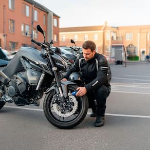 Imobiliza a roda, impedindo que a moto seja movimentada sem a chave.