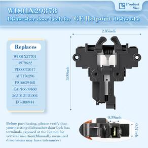 Fechadura da porta da máquina de lavar louça WD01X29878 -?Visão geral do produto?A trava da porta da máquina de lavar louça WD01X29878 é uma peça de reposição genuína projetada para restaurar o fechamento seguro da porta e a funcionalidade de travamento confiável da máquina de lavar louça -?Alta qualidade?Esta trava da porta da máquina de lavar louça WD01X29878 é uma peça Autêntico. Foi exaustivamente testado para garantir longa vida útil e durabilidade, pode resolver com eficácia a porta que não fecha, falha ao iniciar, códigos de erro e trava quebrada na máquina de lavar louça -?Modelos substituíveis?A trava da porta da máquina de lavar louça WD01X29878 substitui as seguintes peças: WD01X27701, 4979622, PD00072017, AP7176296, PS16659468, EAP16659468, EAP16659468 468, 265D1214G004, EG-380944 -?Marcas compatíveis?A trava da porta da máquina de lavar louça WD01X29878 é compatível com a máquina de lavar louça GE e Hotpoint (alguns modelos). Consulte o número completo do modelo na página de detalhes do produto ou diretamente por e-mail para obter mais assistência -?Atendimento ao cliente?Para qualquer problema de qualidade, você pode solicitar uma nova substituição ou reembolso. Sempre priorizamos a satisfação do cliente. Qualquer dúvida, basta nos enviar um e-mail e nós a resolveremos dentro de 12 horas