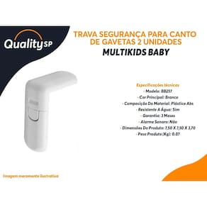 Trava Fechadura Para Cantos De Gaveta Multikids Baby BB257 Segurança Proteção Bebê 2 Peças