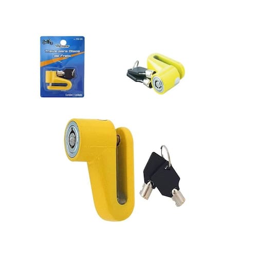 Trava disco freio roda moto bicicleta motocicleta com chave ----loja oficial do click compras na internet---- Somos um dos melhores vendedores do site, nossa missão é atender com amor e carinho nossos clientes, oferecendo sempre o melhor atendimento e produtos de excelência. São milhares de produtos entregues e clientes satisfeitos. ----loja oficial do click compras na internet---- O kit compõe todas as peças da foto principal Produto em A trava de disco é compacta, fácil de transportar e instalar. Compatível somente com moto de freio a disco. Ótima para manter a sua moto mais segura, deixando muito mais difícil o furto. Acompanha duas chaves, para você usar uma no dia-a-dia e a outra guardar como reserva. - resistente a impactos, chuva e poeira. - reforçada - não enferruja com facilidade - chave redonda multi ponto - compacta e segura - excelente qualidade Características técnicas: - abs, cobre e alumínio - medidas da trava: 5,7cm de comprimento x 4,4 cm de altura x 2,4cm de largura Conteúdo: - 1 trava de disco pequena - 2 chaves Marca: Não Informado