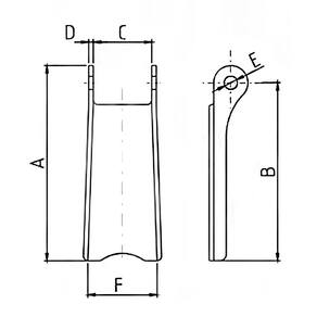 - Dimensões: A: 48 mm B: 42,5 mm C: 15 mm D: 2,66 mm E: 4 mm F: 15 mm