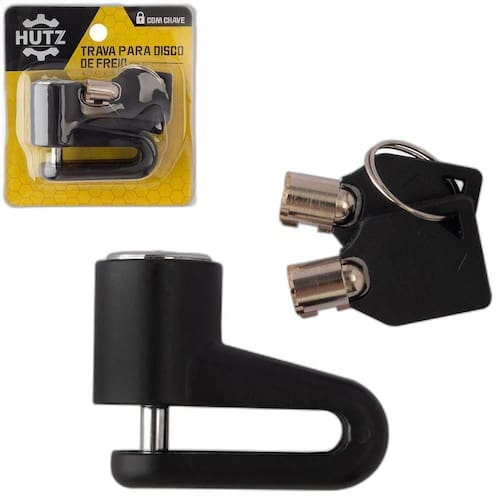 Informações adicionais: Ean: 7908169023980 Validade: indeterminada Atenção: mantenha longe das crianças Tamanho aproximado da trava : 4,5x5,5 cm Tamanho aproximado da embalagem : a:9xl:8,5cm Peso aproximado: 90g Tipo de produto: trava para disco de freio de moto com 2 chaves Cor: preto / prata Composição: plastico e aluminio