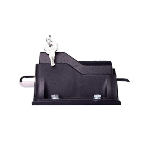 Descricao Plastico de engenharia e anti-chama Base fabricada em chapa de engenharia automobilistica Pino de aco especial com tratamento anti-corrosivo, graxa especial de alta temperatura e mola de retorno em aco inox Com chave para destravamento em caso de falta de energia eletrica Estrutura super resistente e alta durabilidade Dimensao do produto: Trava ? A 75mm x L 105 mm x P 144 mm Rampa ? A 160 mm x L 560mm x P 30mmEspecificacao Tecnica Plastico de engenharia e anti-chama Base fabricada em chapa de engenharia automobilistica Pino de aco especial com tratamento anti-corrosivo, graxa especial de alta temperatura e mola de retorno em aco inox Com chave para destravamento em caso de falta de energia eletrica Estrutura super resistente e alta durabilidade Dimensao do produto: Trava ? A 75mm x L 105 mm x P 144 mm Rampa ? A 160 mm x L 560mm x P 30mm