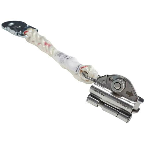 Especificações técnicas - Modelo: CP 3101 - Material: Aço inox (corpo do trava quedas) - Extensor: Corda de 14mm com 280mm de comprimento - Conector: Classe T em aço com abertura de 18mm - Compatibilidade: Cordas de 12mm - Normas: ABNT/NBR 14627:2010 e 15837:2020 - Uso: Em conjunto com cinturões paraquedista - Marca: CAMPER