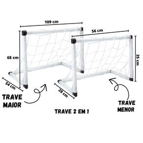 Informações Técnicas: Composição: Plásticos PVC, PE e PP. Duas formas de montar: Medida da trave grande montada: 109cm x 54cm x 68cm. Medida das traves menores montadas: 56cm x 28cm x 35cm. Com acessórios, fácil de montar.