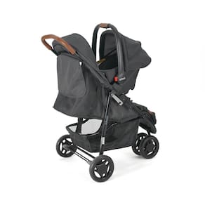 Carrinho aprovado pelo Inmetro conforme norma ABNT 14 389 e bebê conforto aprovado pela norma ABNT 14 400.