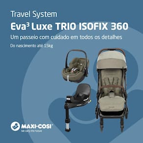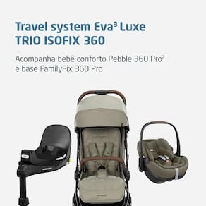 O Travel System EVA Pebble 360 Pro da Maxi Cosi foi pensado em cada detalhe para tornar os dias mais fáceis e, claro, mais especiais. O sistema possui a integração do carrinho EVA e do bebê conforto Pebble 360 Pro e base Family Fix 360 Pro, com a nova tecnologia SlideTech.