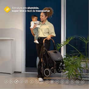 - Amortecedores nas quatro rodas e rodas dianteiras com giro 360°, garantindo passeios suaves.