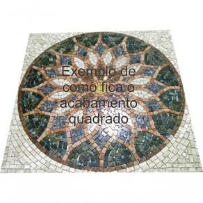 Especificações técnicas do mosaico: Feito com pedras - Mármores e granitos de todo o e importados da Europa e Ásia - para obter todas as cores desejadas em pedras naturais; Vem todo montado sobre tela, só colocar conforme manual de colocação, Resistência e Durabilidade em área interna e externa; Espessura de 10 mm Mesma espessura do porcelanato ou piso cerâmico Liso e agradável para uso diário; Mosaico feito integralmente à mão com técnica do mosaico romano;