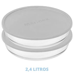 2 Assadeiras de vidro Redonda com tampa 2,4 Litros Marinex