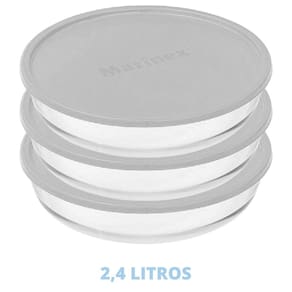 3 Assadeiras de vidro Redonda com tampa 2,4 Litros Marinex