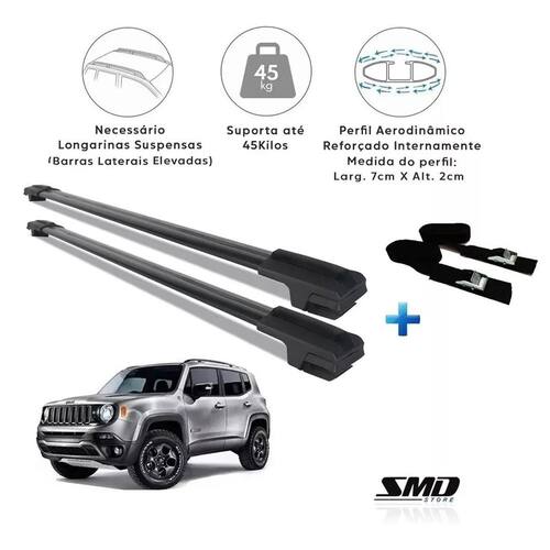 Travessa Aluminio Preto Renegade 15 A 23 Com Cinta Amarração Preto Especifico Par de travessas de teto rack larga alumínio preto + par de cintas de amarração 5m Serve nos modelos com barras laterais como apresenta na foto 2 do anúncio Aplicação: Montadora: jeep Modelo: renegade necessário ter longarinas no teto Cor disponível: Preto Especificação técnica: Fabricada em alumínio resistente Pintura eletrostática na cor preto Parafusos em aço inox Borracha central para apoio de cargas Modelo com 7 cm de largura e 2 cm de espessura Não é necessário fazer adaptações no comprimento a peça é feita de acordo com o veículo Capacidade máxima de 45 kgs distribuídos Conteúdo da embalagem: 2 travessas Instalação: Importante: Valor do par Recomenda-se que a instalação seja feita por profissionais capacitados ou por pessoas com conhecimento sobre todos os aspectos que a envolvem. Não nos responsabilizamos por instalação mau realizada. Cinta presilha com proteçao para amarraçao de carga 5 metros de 25mm - 2 peças A cinta com proteçao para amarração de carga com medida de 5 metros de comprimento e 25mm de largura têm uma ótima resistência pois são confeccionadas em polipropileno e possui uma presilha feita de zamak super resistente a corrosões comparado com latão ou ferro, alem de uma proteção extra para evitar riscos com eventual contato da presilha na pintura do veículo. Esta cinta é ideal para quem precisa prender algo com facilidade o conjunto possui uma resistência suficiente para prender diversos tipos de produtos com segurança como bikes, cargas, bagagens etc.. Características do produto: Marca: smd Código:fiv.001.2 Modelo:five25 Quantidade s :2 peças Especificações técnicas: Composição: 100% polipropileno 25mm Presilha: metal zamak de 25mm Capacidade de carga:70kg para amarração Medidas: 5m x 2,5 cm. Peso: 0.30 kg :3 meses Atenção: as compras realizadas em nome de pessoa jurídica estão sujeitas à cobrança de icms, conforme protocolo icms 41, de 4 de abril de 2008. Caso você tenha dúvidas sobre o percentual a ser aplicado, consulte a cláusula segunda, 1 do referido protocolo. Nosso horário de atendimento é de segunda a sexta das 9 as 17 horas exceto feriados . Boa compra... Marca: Não Informado