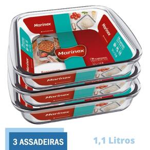 3 Assadeiras 1,1 Litros Quadrada Marinex Nadir Figueiredo