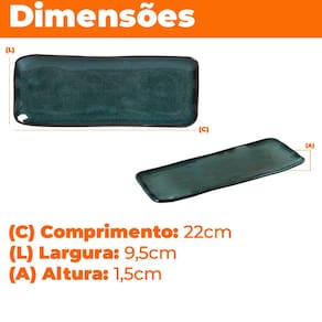 1 Travessa: 22cm de comprimento x 9,5cm de largura x 1,5cm de altura