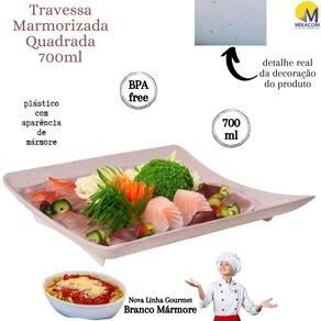 Este produto da nova linha marmorizada traz um toque peculiar, estiloso e moderno aos seus utensílios de servir. O produto é fabricado em polipropileno atóxico de alta densidade, totalmente seguro para a alimentação e livre de BPA em sua composição. A decoração no fundo do produto é permanente devido à tecnologia intraimagem aplicada em sua fabricação, que não permite desbotamento e mantém os detalhes marmorizados vivos por mais tempo. A travessa, inclusive, pode ser levada com segurança tanto ao freezer como microondas, sem comprometimento da integridade do material e tampouco da saúde de quem nele se serve. O produto suporta temperaturas extremas variantes entre -10º e 120º, embora não possa ser levado ao forno convencional.