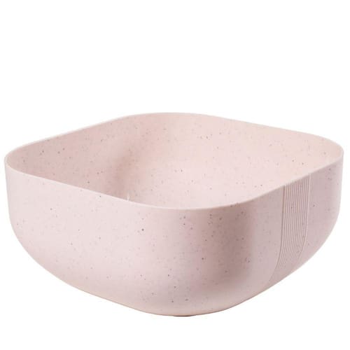 Travessa funda quadrada de plástico 710 ml para cozinhar e servir refeições, com decoração predominantemente branca com leves traços/ranhuras pretas por toda a peça, que traz uma aparência marmorizada super requintada à travessa.
