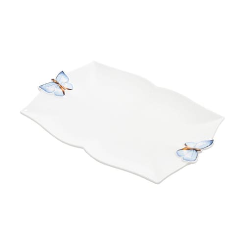 LINDA TRAVESSA DE PORCELANA COM DETALHES DE BORBOLETAS COMBINA CHARME E ELEGÂNCIA NA HORA DE SERVIR.