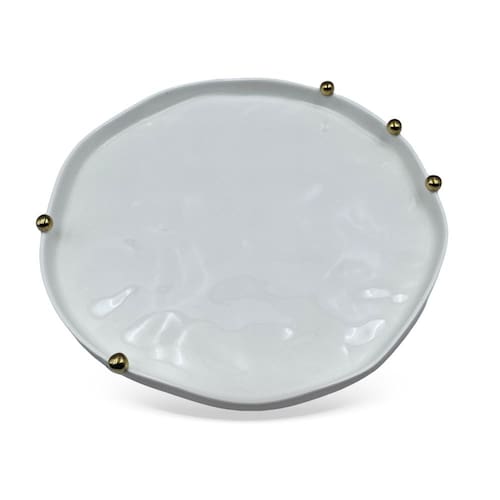 Travessa Decorativa em Porcelana Branca e Douradas