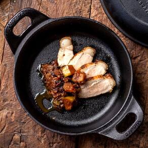 Travessa Estilo Redonda Alça Ferro Panela Mineira 14cm 0,4L A Travessa Estilo Redonda Alça de Ferro da Panela Mineira é um produto moderno, prático e eficiente, que apresenta alto desempenho no preparo de diversas receitas. O calor distribuído por toda a superfície faz com que o alimento cozinhe de maneira uniforme, conservando suas propriedades e nutrientes. Além de tudo, possui um design autêntico e elegante, com fundo reto preto e alças largas, o que a torna excelente para assar, grelhar, fritar, cozinhar e servir. Muito utilizada em bares e restaurantes para porções menores. Onde usar: Devido a sua versatilidade, pode ser utilizado em fogões a gás, a lenha, elétricos, cooktops de indução, vitro-cerâmicos, fornos, grills, churrasqueiras e fogo de chão. Orientação de Uso e Conservação:Antes do primeiro uso: Lave com água e sabão, seque bem com um pano e leve ao fogo para remover toda a umidade. Já vem pronta para uso, então não precisa ser curada. Guarde em um local seco. Após cada uso: Lave com água e sabão, usando uma esponja ou escova para remover todos os resíduos de alimentos. Se restarem resíduos, ferva água com um pouco de detergente para soltá-los. Pintura: Revestimento atóxico que garante durabilidade e proteção prolongada, sem causar nenhum dano à saúde. Características Técnicas e Medidas: Linha: Bares e Restaurantes.Material: Ferro Fundido.Modelo: Redonda.Diâmetro: 14cm.Litragem: 0,4L.Altura: 3,5cm.Alças: Ferro.Peso: 0,7Kg.Chapa: Lisa. Itens Inclusos: 01 Travessa Estilo Redonda Alça Ferro Panela Mineira 14cm 0,4L. Código: 5019PMProdutoLojaPlast.