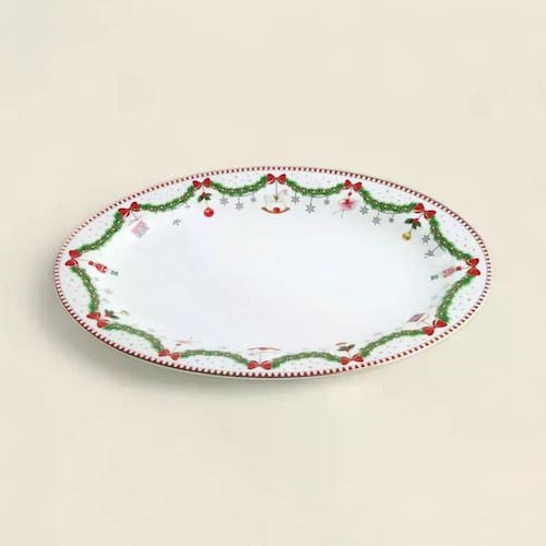 Transforme sua mesa de Natal em um verdadeiro espetáculo com a travessa Magic. Feita em porcelana de alta qualidade, ela combina funcionalidade com um design encantador, ideal para servir pratos especiais com um toque de sofisticação. Seu formato retangular e acabamento delicado fazem dela uma peça indispensável para quem valoriza beleza e tradição nas celebrações.Medidas: