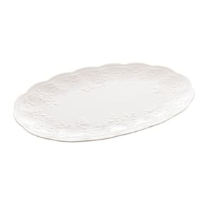 Travessa Oval de Porcelana New Bone Butterfly Flower Branco 42x27,5cm Lyor - Travessa de Porcelana