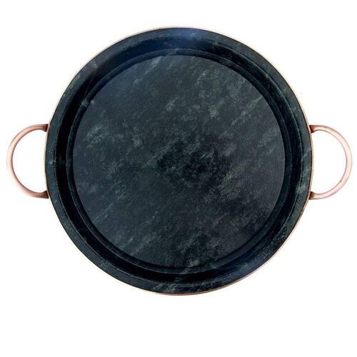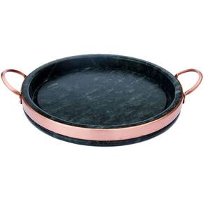 TRAVESSA PARA PORÇÕES DE PEDRA SABÃOQue tal reunir a família e amigos para compartilhar bons momentos acompanhados de deliciosas porções!?Duráveis e decorativas as travessas de Pedra Sabão levam charme e requinte para sua cozinha e mesa. Leve o sabor da comida mineira para sua casa!Medidas Travessa:- Diâmetro: 32 cm- Alça a alça: 39 cm- Altura externa: 3 cm- Altura externa: 2 cm- Peso: 3.5 kgMatéria prima- Pedra Sabão e Cobre** Os produtos de Pedra Sabão devem passar por um processo de cura, que sela e aumenta a resistência da pedra. O processo é simples e leva apenas alguns minutos. Enviaremos instruções de como curar seu produto. Com a cura a pedra escurece, ficando num tom próximo ao preto.