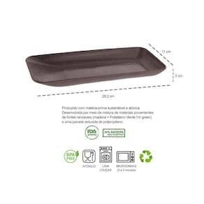 Travessa retangular multiuso, perfeita para servir aperitivos ou serve como bandeja e descanso de talheres. Travessa fabricada com materia-prima sustentavel, atoxica e desenvolvida por meio da mistura de materiais provenientes de fontes renoaveis e uma parcela reduzida de polipropileno. Pode ser levado a lava louças e microondas para breve aquecimento. Os produtos EVO são inovadores, fabricado a partir do etanol da cana-de-açucar. Produtos aprovados segundo normas do FDA (Food and Drug Administration) dos Estados Unidos. Contem: 1 Travessa Retangular Medidas: 26,2 x 11 x 3 cm Peso: 95g Obs: Por ser produzido com materia prima renovavel, pode apresentar alteraçao na tonalidade das cores. Casacha é uma loja online de utensilios para cozinha, restaurante, bares e bistros