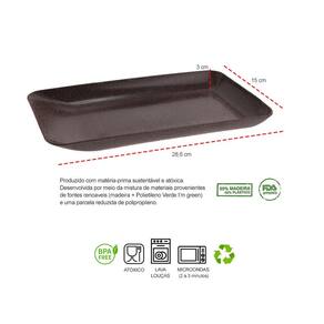 Travessa retangular multiuso, perfeita para servir aperitivos ou serve como bandeja. Travessa fabricada com materia-prima sustentavel, atoxica e desenvolvida por meio da mistura de materiais provenientes de fontes renoaveis e uma parcela reduzida de polipropileno. Pode ser levado a lava louças e microondas para breve aquecimento. Os produtos EVO sao inovadores, fabricado a partir do etanol da cana-de-açucar. Produtos aprovados segundo normas do FDA (Food and Drug Administration) dos Estados Unidos. Contem: 1 Travessa Retangular Medidas: 28,6 x 15 x 3 cm Peso: 140g Obs: Por ser produzido com materia prima renovavel, pode apresentar alteraçao na tonalidade das cores. Casacha é uma loja online de utensilios para cozinha, restaurante, bares e bistros