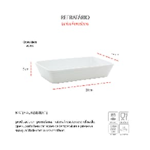 Contem:1 Refratario Medidas: 20 x 15 x 5 cm Material: Porcelana