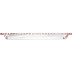 Travessa Retangular de Cristal Coração Borda Rosa 30cm x 13cm x 3cm - Lyor