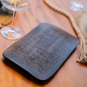 Travessa Retangular Em Cerâmica Juta Preto Matte 27x16cm Porto Brasil -