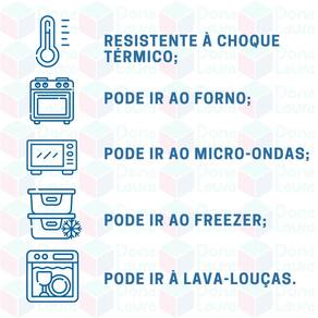 INFORMAÇÕES ADICIONAIS: - De vidro temperado com alto teor de borossilicato; - Resistente à choque térmico; - Pode ir ao forno; - Pode ir ao micro-ondas; - Pode ir ao freezer; - Poder ir a lava-louças.